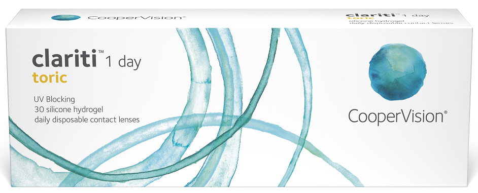 The popular Clariti 1 day toric daily disposables designed to correct astigmatism. Allows increased oxygen for healthy whiter looking eyes. It provides more than the recommended amount of oxygen across the entire lens surface to help maintain ocular health.